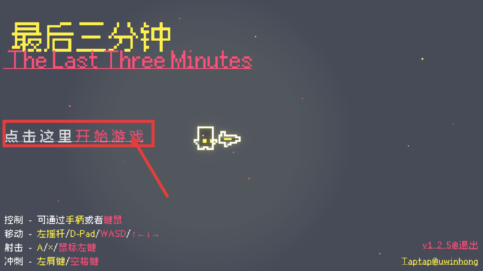 1、启动游戏先点击【点击这里开始游戏】,明确【手柄-键鼠】操作逻辑,掌握移动射击冲刺键。