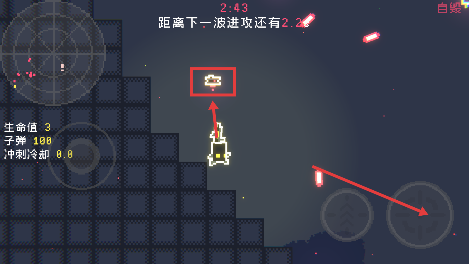 3、限时生存挑战:在三分钟时间内不断射击和移动,存活下来即可通关,进入后续挑战模式。