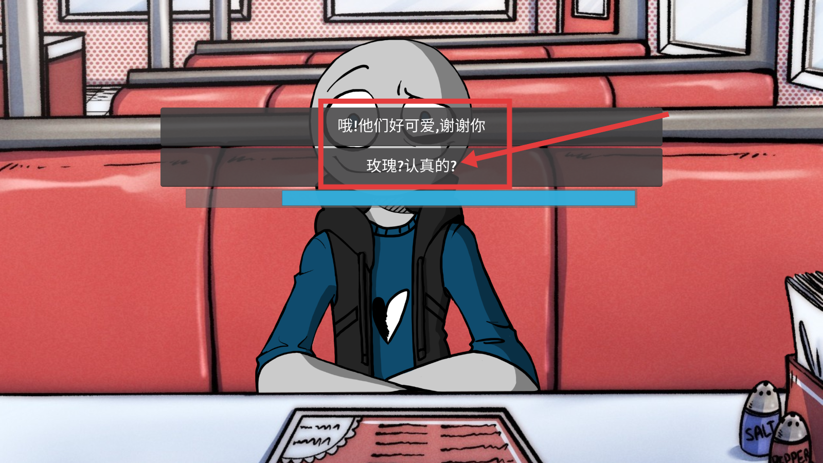 3、在对话选项中,权衡【哦!他们好可爱-谢谢你】与【玫瑰?认真的?】,选契合角色的答案。