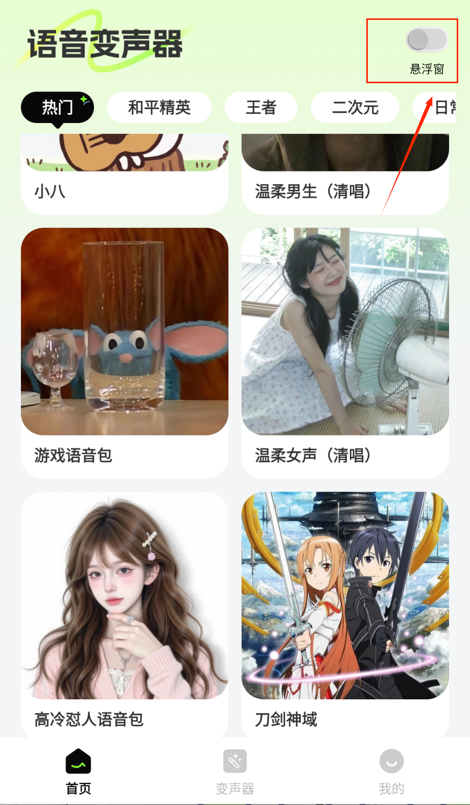 2、在设置中开启悬浮窗权限后,变声器会以小图标形式悬浮在屏幕边缘,玩游戏或聊天时点击就能快速切换不同音效,非常方便。