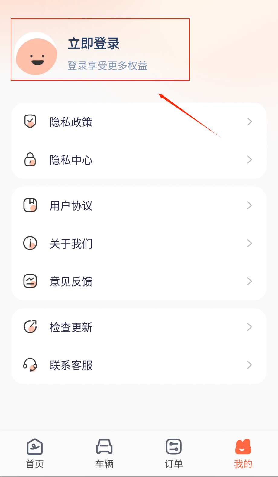1、首次打开应用需要进行简单的账号注册,填写基本信息后即可开始使用,系统会根据定位自动显示附近可用车辆资源。