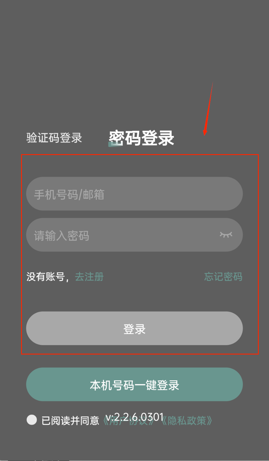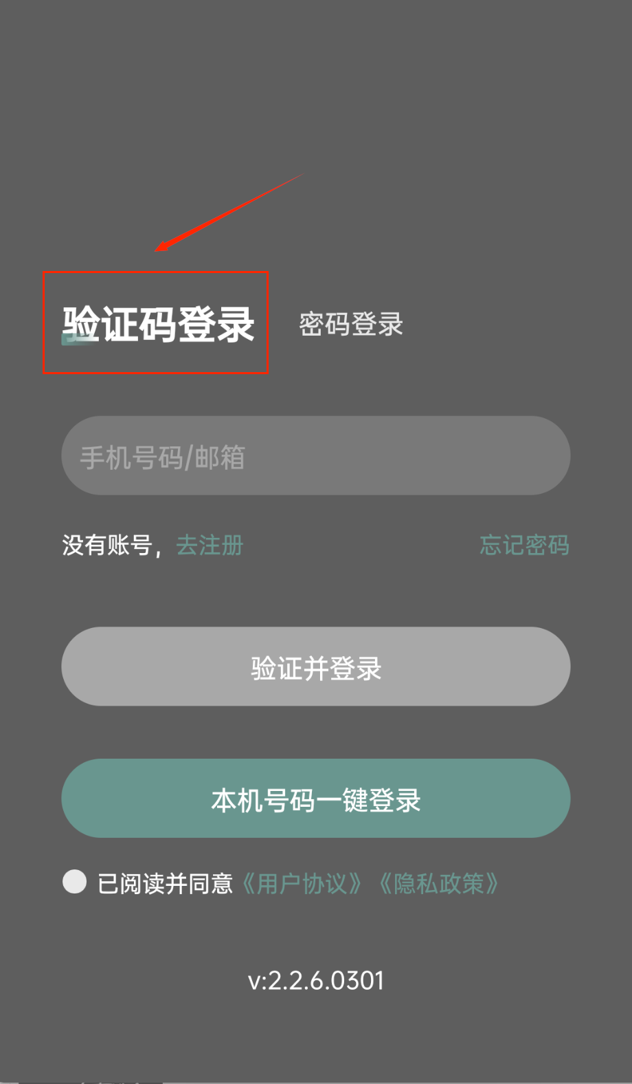 1、打开软件看到登录界面呢,可以选择验证码登录或者密码登录方式。输入手机号或邮箱后,记得勾选同意用户协议才能继续操作。