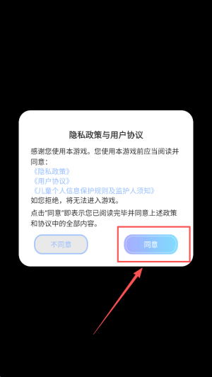 1、点击“同意”按钮,接受隐私政策与用户协议。