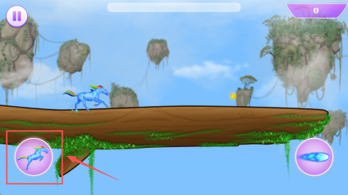 3、使用左下角的跳跃按钮,控制独角兽跳跃。