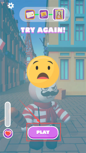 4、如果失败,点击“PLAY”按钮,重新开始。