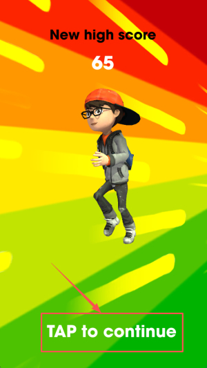 3、达成新高分后,点击“TAP to continue”继续游戏。