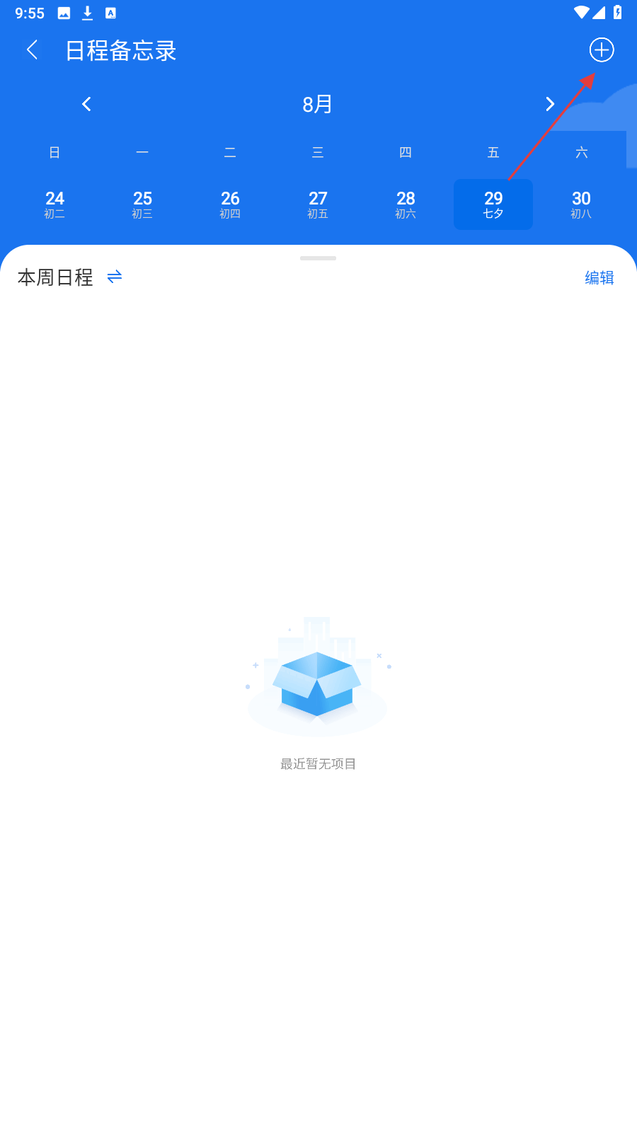 2、在【日程备忘录】,点右上角【+】,开始添加新日程事项。