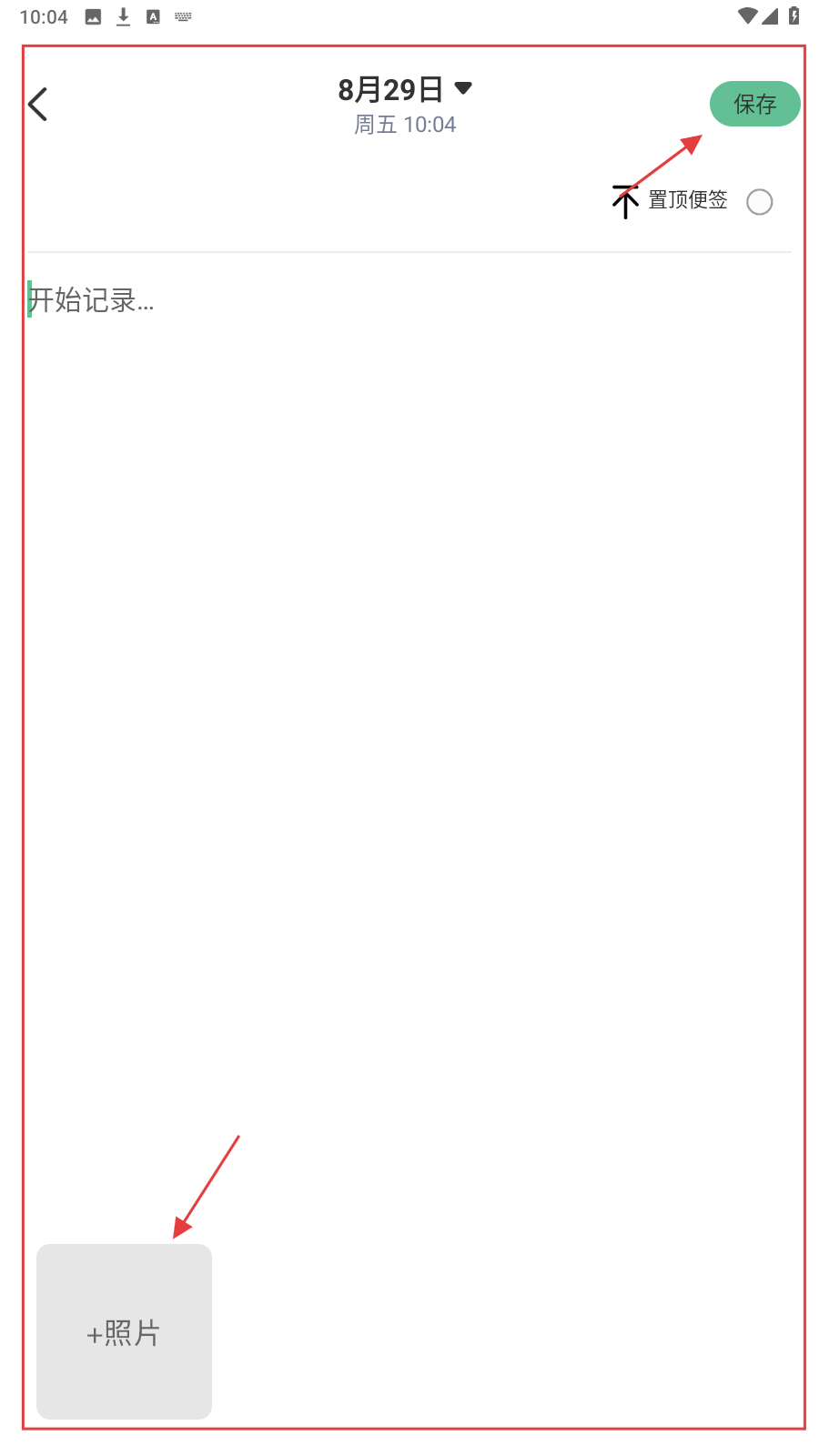 4、在便签编辑页,录入内容、选日期,可加照片,点【保存】留存。