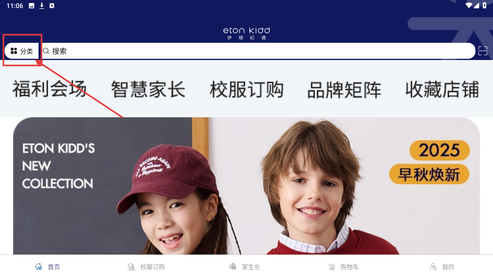 1、打开应用商城,点左上角【分类】,进入商品分类导航页。