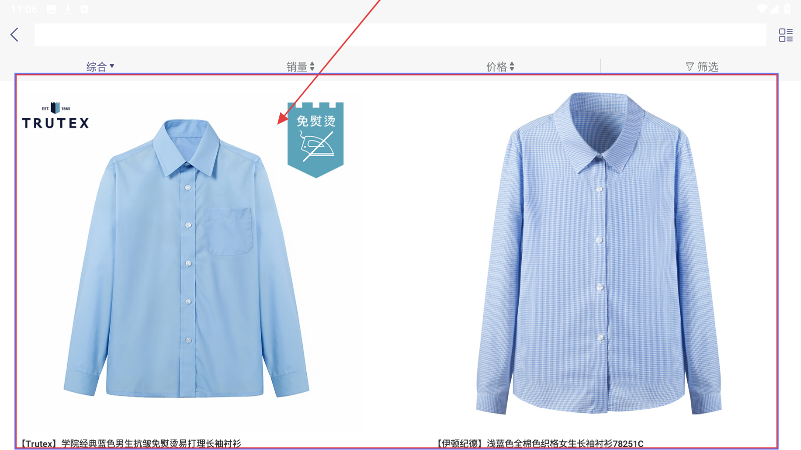 3、在长袖衬衫列表,选心仪款式,如【TRUTEX免熨烫衬衫】。