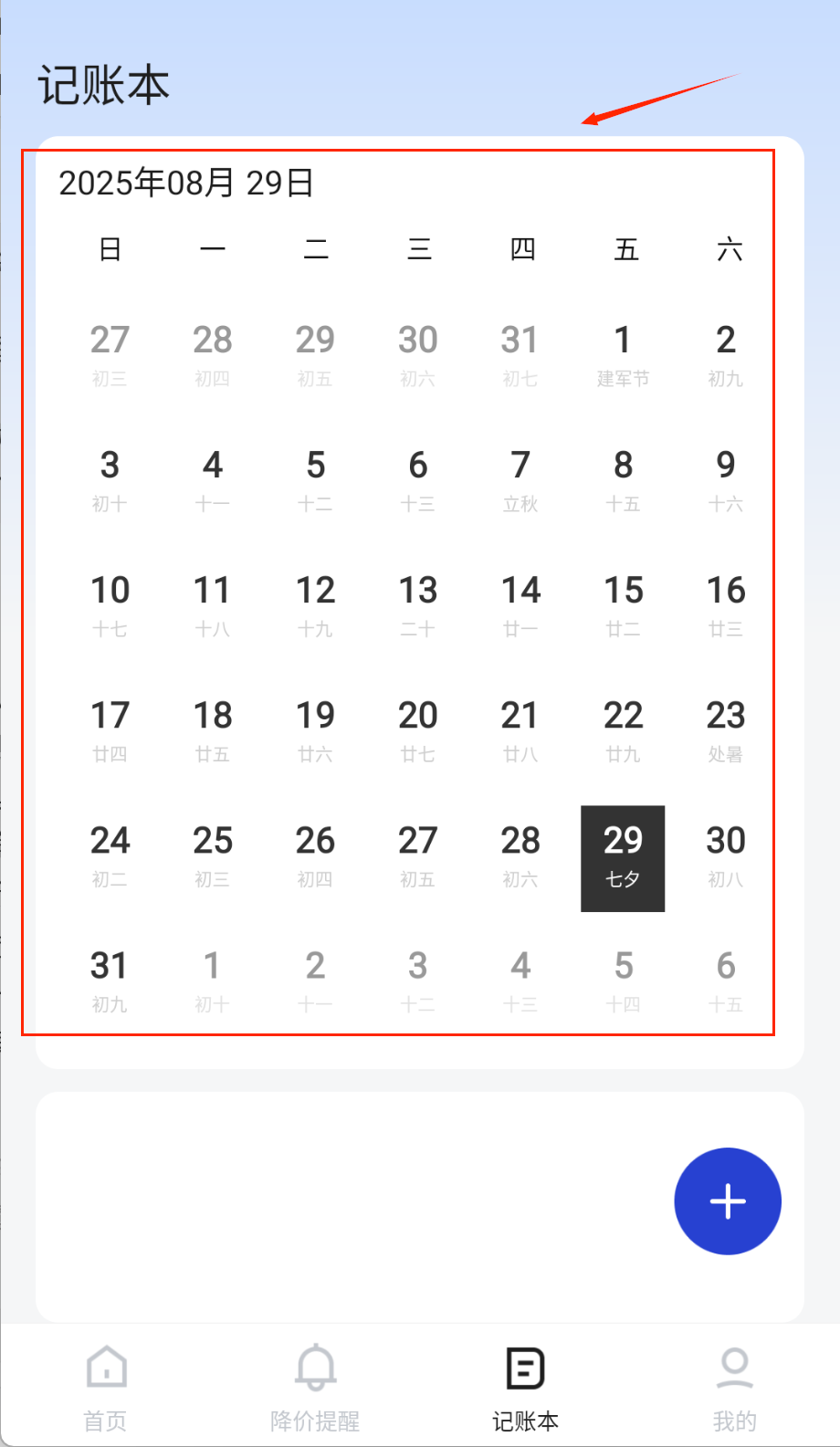 3、消费日历视图以直观的日历形式展示每日收支情况,支持快速定位特定日期消费记录,便于查询和核对历史消费明细。