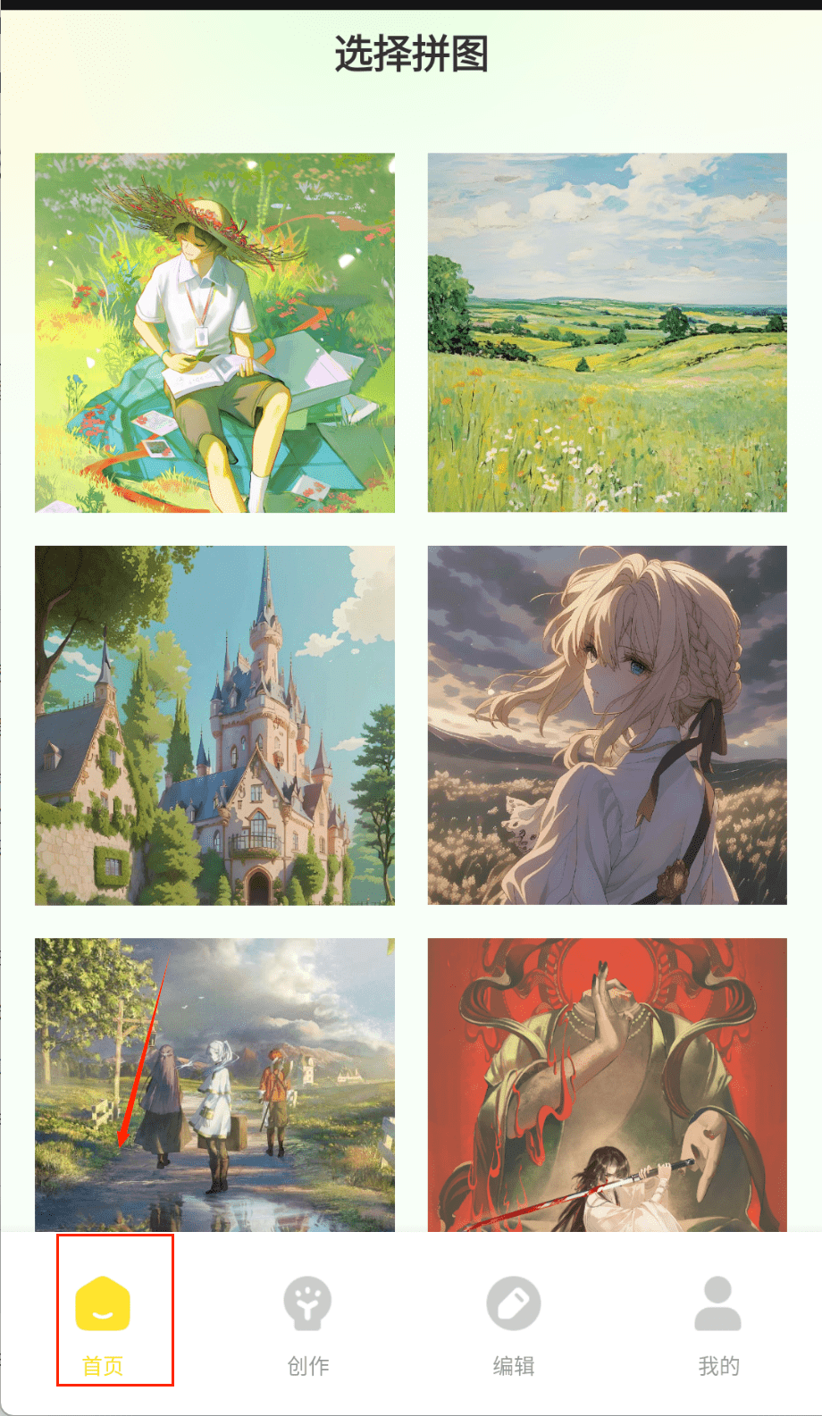 1、打开应用后从首页选择拼图模式,可以从丰富的图库中挑选喜欢的模板或直接上传个人照片开始创作个性化作品。