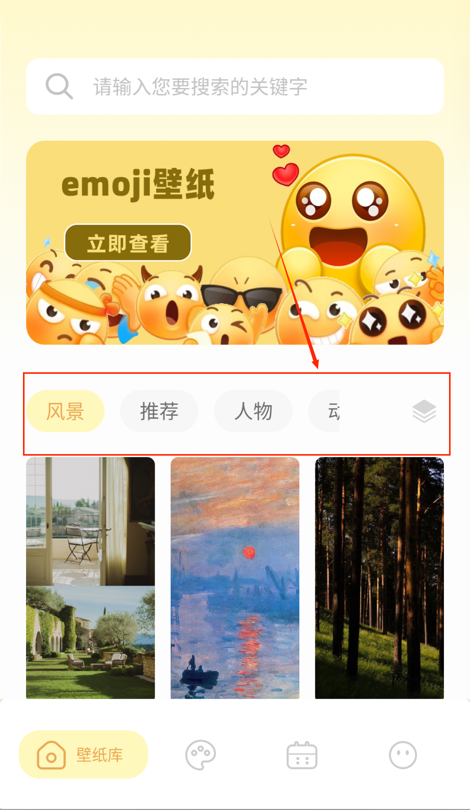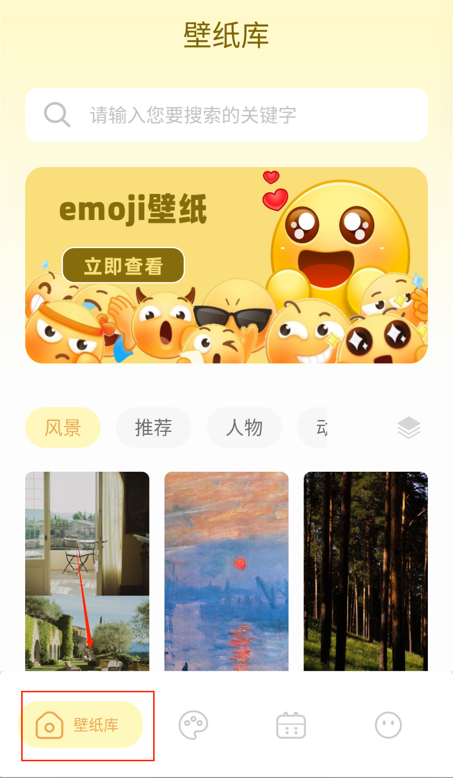 1、下载安装后首先浏览首页推荐的精选壁纸,或通过分类标签如风景、动漫、抽象等查找喜欢的主题风格开始个性化美化旅程。