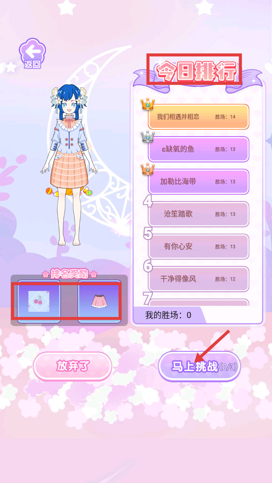 2、关注【今日排行】,看清排名奖励,点击【马上挑战(0/3)】,参与比拼赢取奖励。