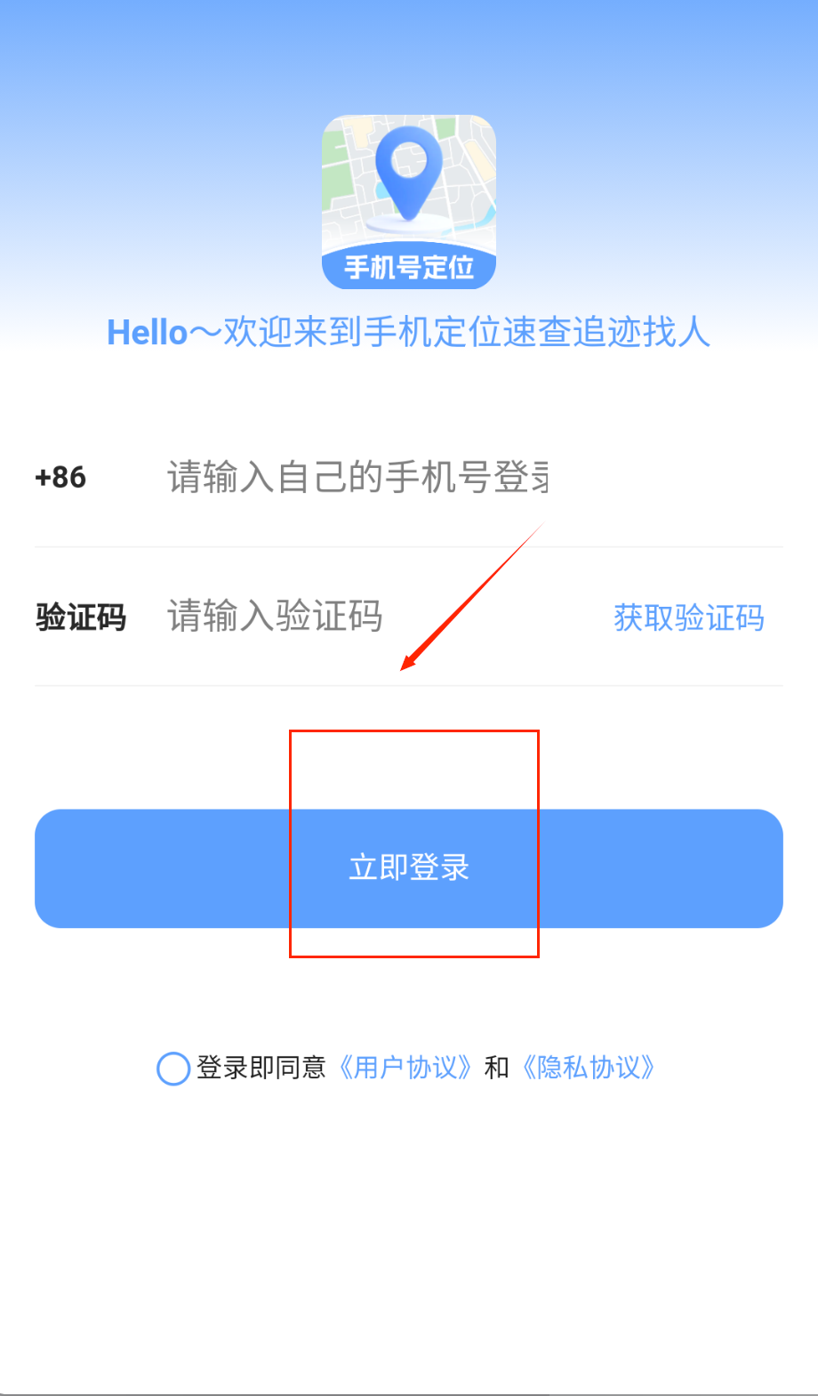 3、登录界面需要输入手机号和验证码信息,手机号栏默认带有+86前缀,验证码通过点击获取验证码按钮接收,填写完整后点击立即登录。
