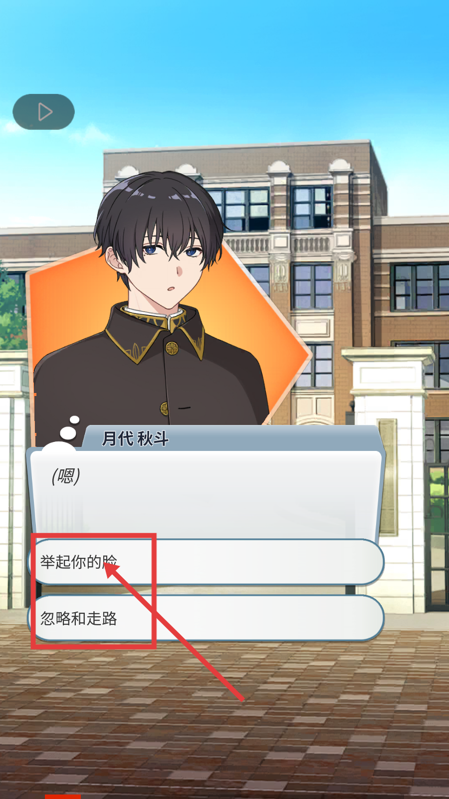 3、面对选择,按需选【举起你的脸】或【忽略和走路】,不同选项导向不同剧情分支。
