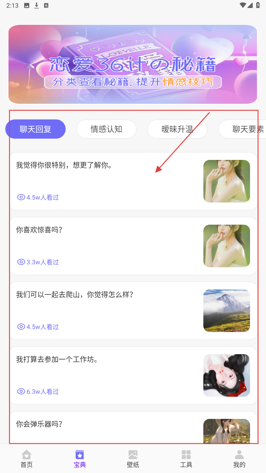 3、切换到【宝典】-【聊天回复】,挑感兴趣内容,点进去查看完整话术逻辑。