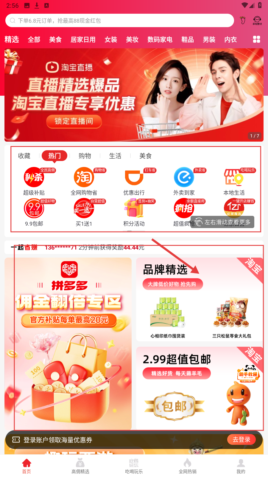 1、进入首页,选【品牌精选】,浏览大牌好货,找心仪商品。