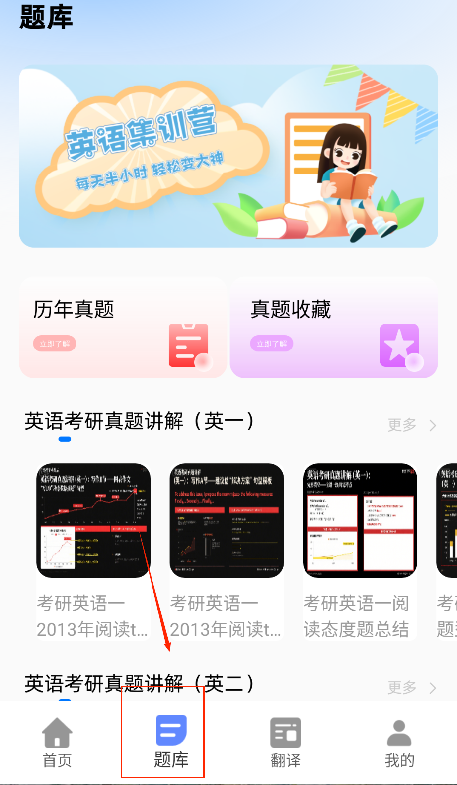 3、真题训练功能将核心词汇有机融入模拟试题,特别设计阅读理解、完形填空、翻译等题型的专项练习,帮助用户在真实考试语境中掌握词汇。