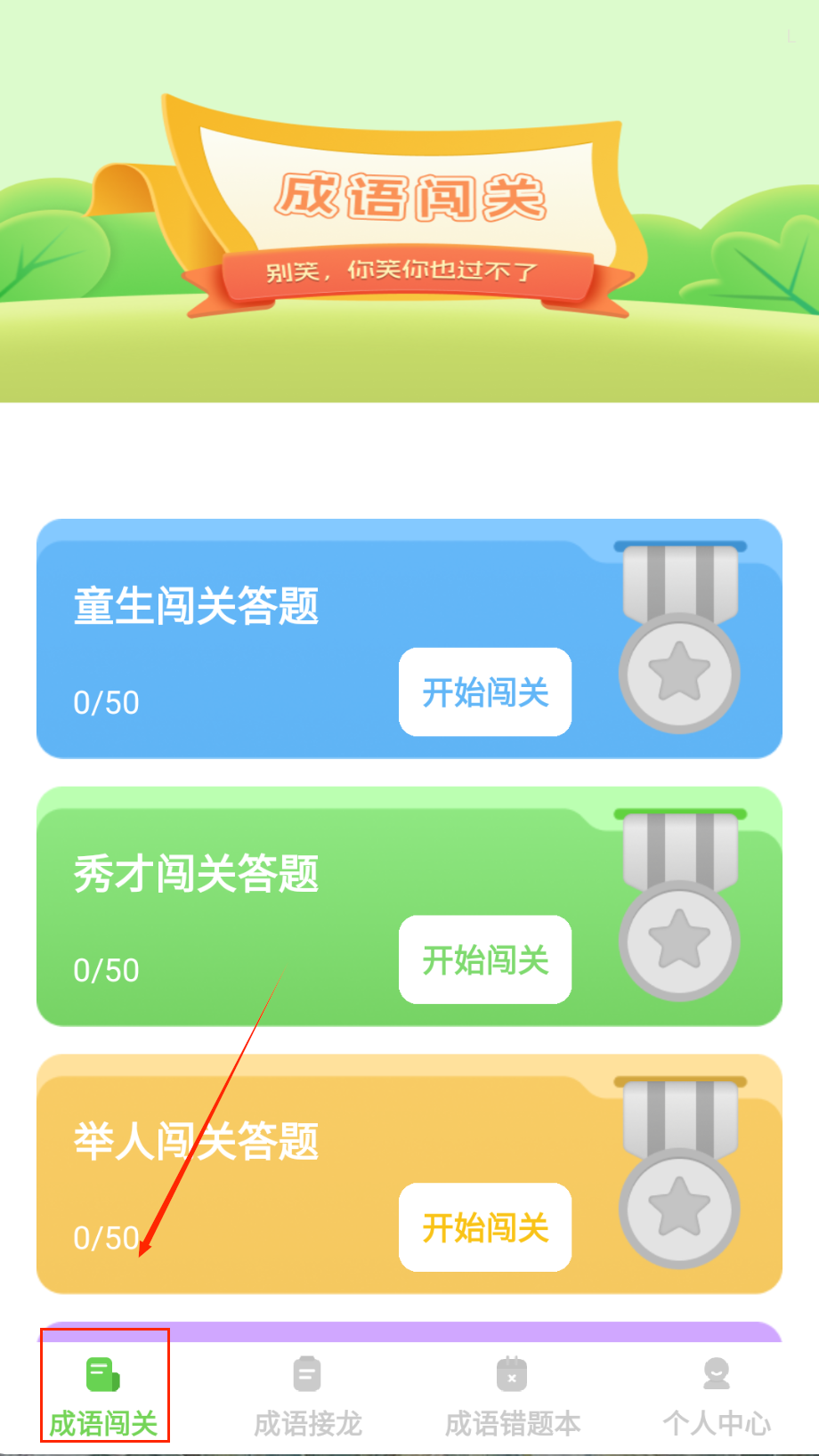 2、在闯关模式中完成成语填空、接龙等挑战任务,答错题目会自动收录至错题本供重点复习。