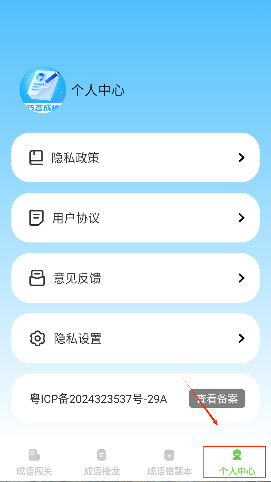 4、个人中心查看学习报告,了解各类型成语掌握情况,可以针对薄弱环节进行专项训练。