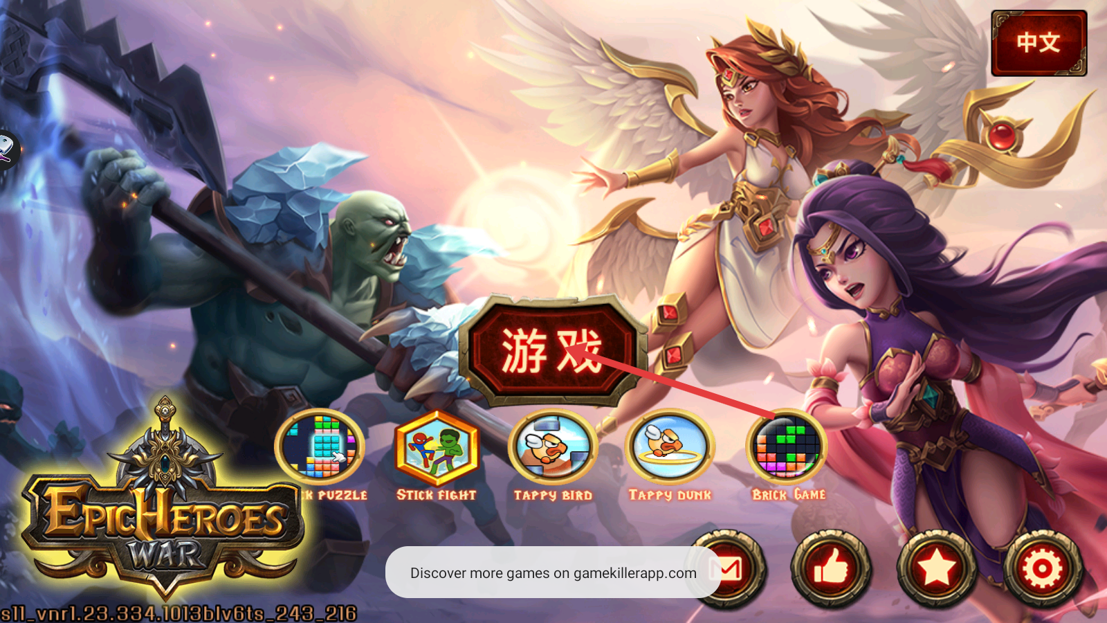 1、进入游戏界面,选定【Epic-Heroes-War】图标,开启冒险,先熟悉主界面功能分布。