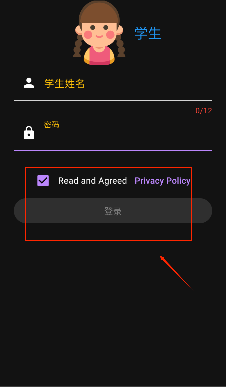 4、最后一定要勾选同意隐私政策的选项,那个选项写着Read and Agreed Privacy Policy,勾选后登录按钮就会变成可点击状态。