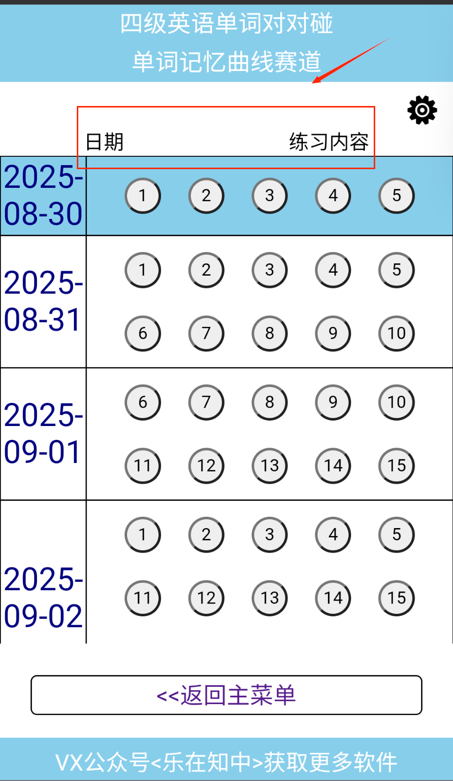 1、下载安装后选择适合的词汇书,系统会根据考试时间自动生成每日学习计划,建议每天坚持完成。