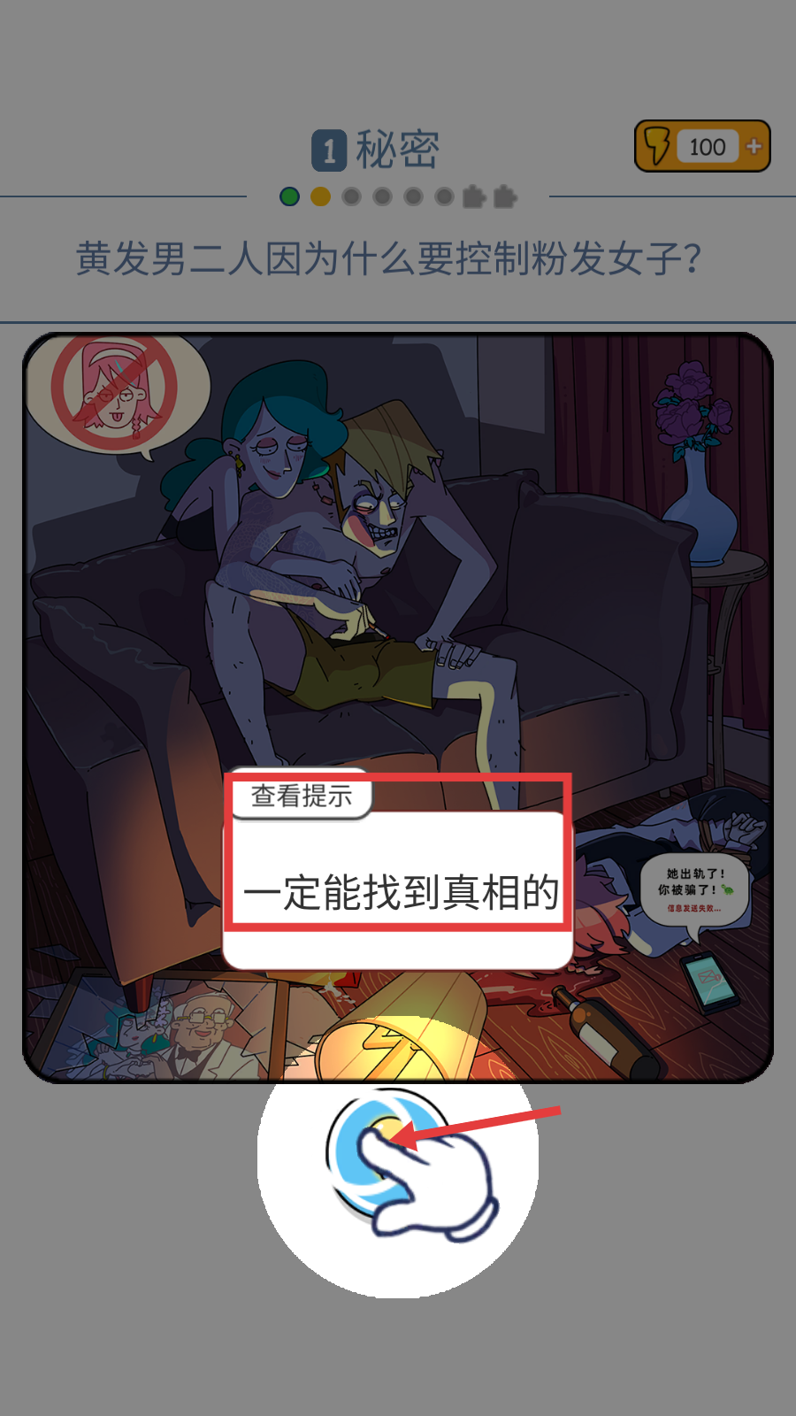 3、推理遇阻时点击提示,借助【一定能找到真相的】指引,突破《秘密》章节解谜瓶颈。