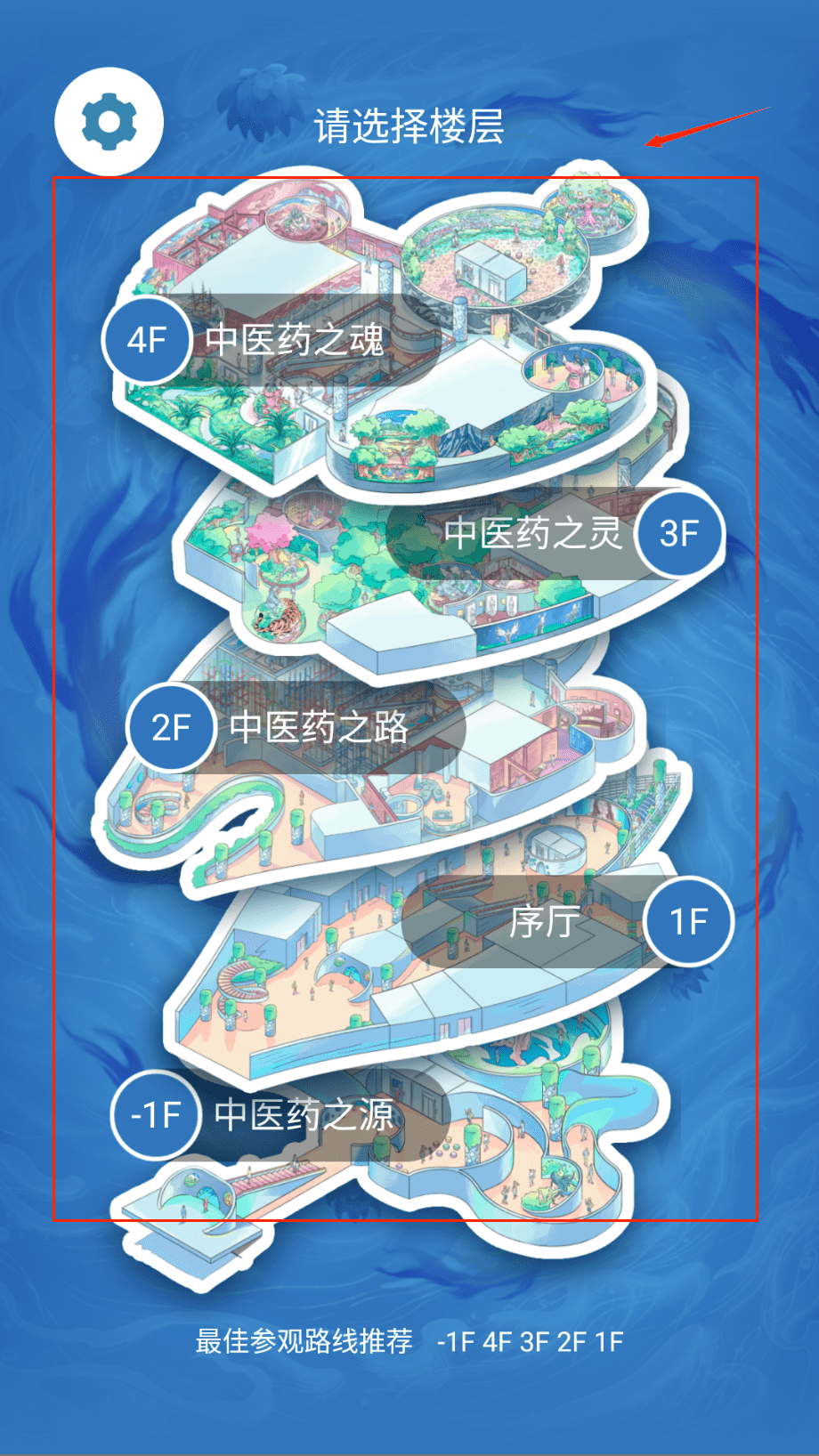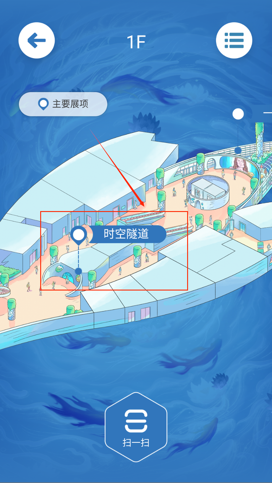 2、进入手绘地图界面后可以看到展馆的整体布局,不同颜色的标记代表各类展品,点击任意标记就能查看该展品的高清图片和详细文字介绍。
