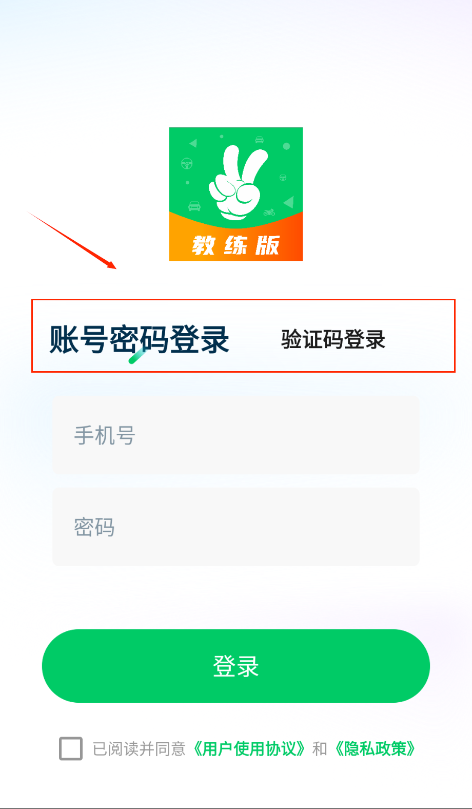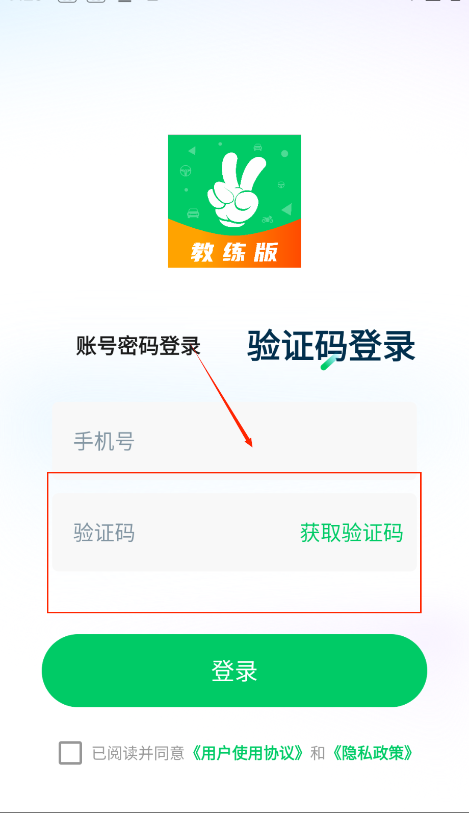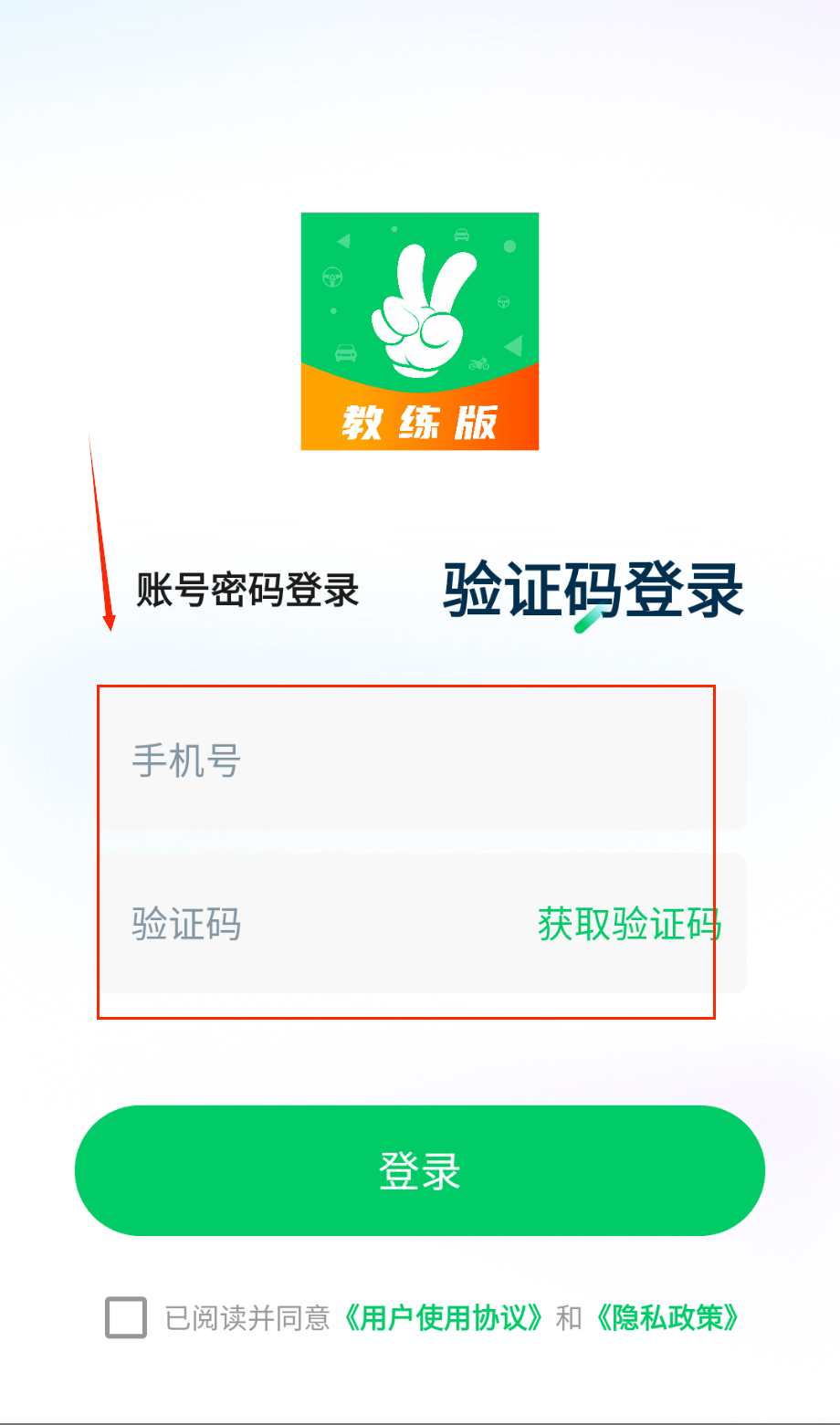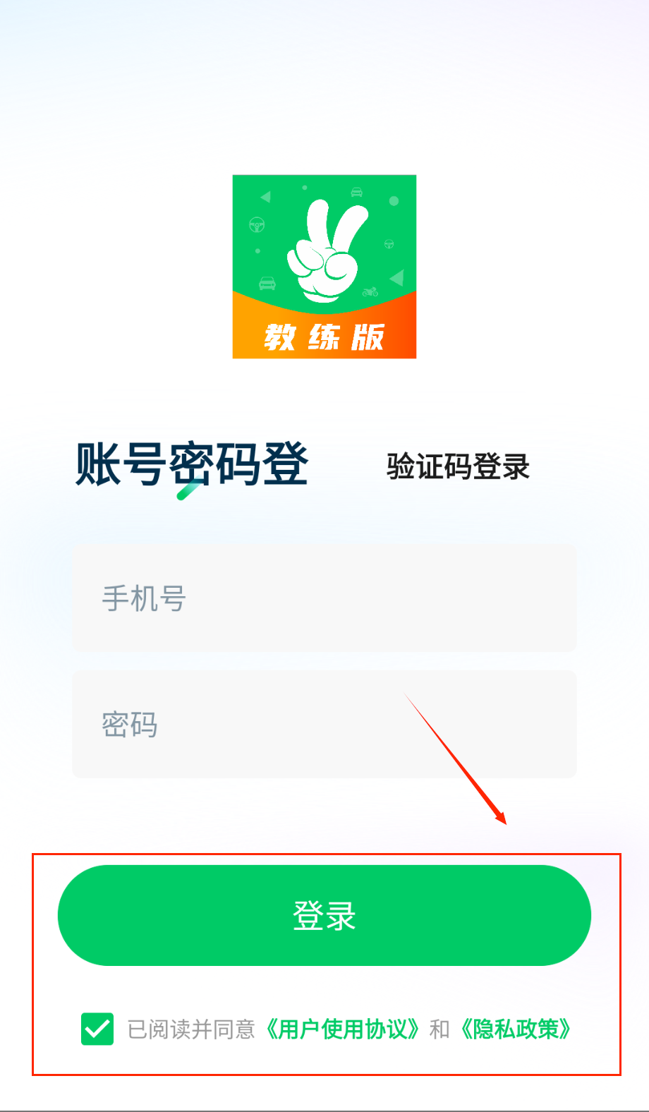 4、最后一定要记得勾选同意用户协议和隐私政策的选项,那个小方框需要打勾才能点击登录按钮进入软件。