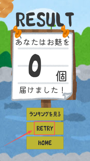 4、重新开始或返回主菜单:在结果页面,点击“RETRY”重新开始或“HOME”返回主菜单。