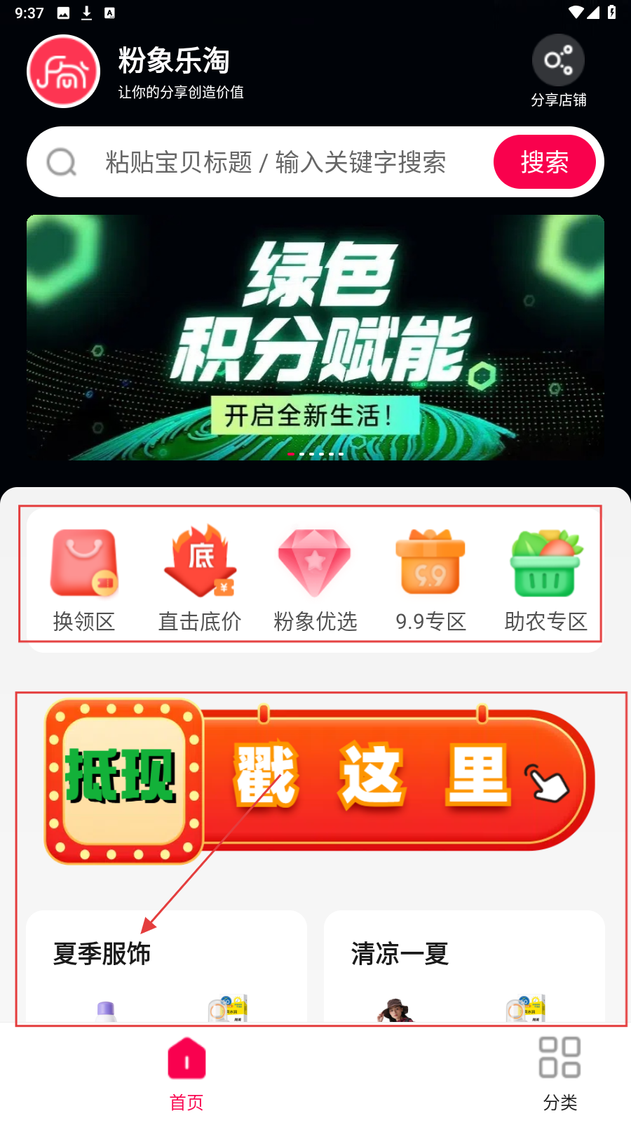 1、进入【粉象乐淘】首页,用搜索找商品,或选【粉象优选】逛精选好物。