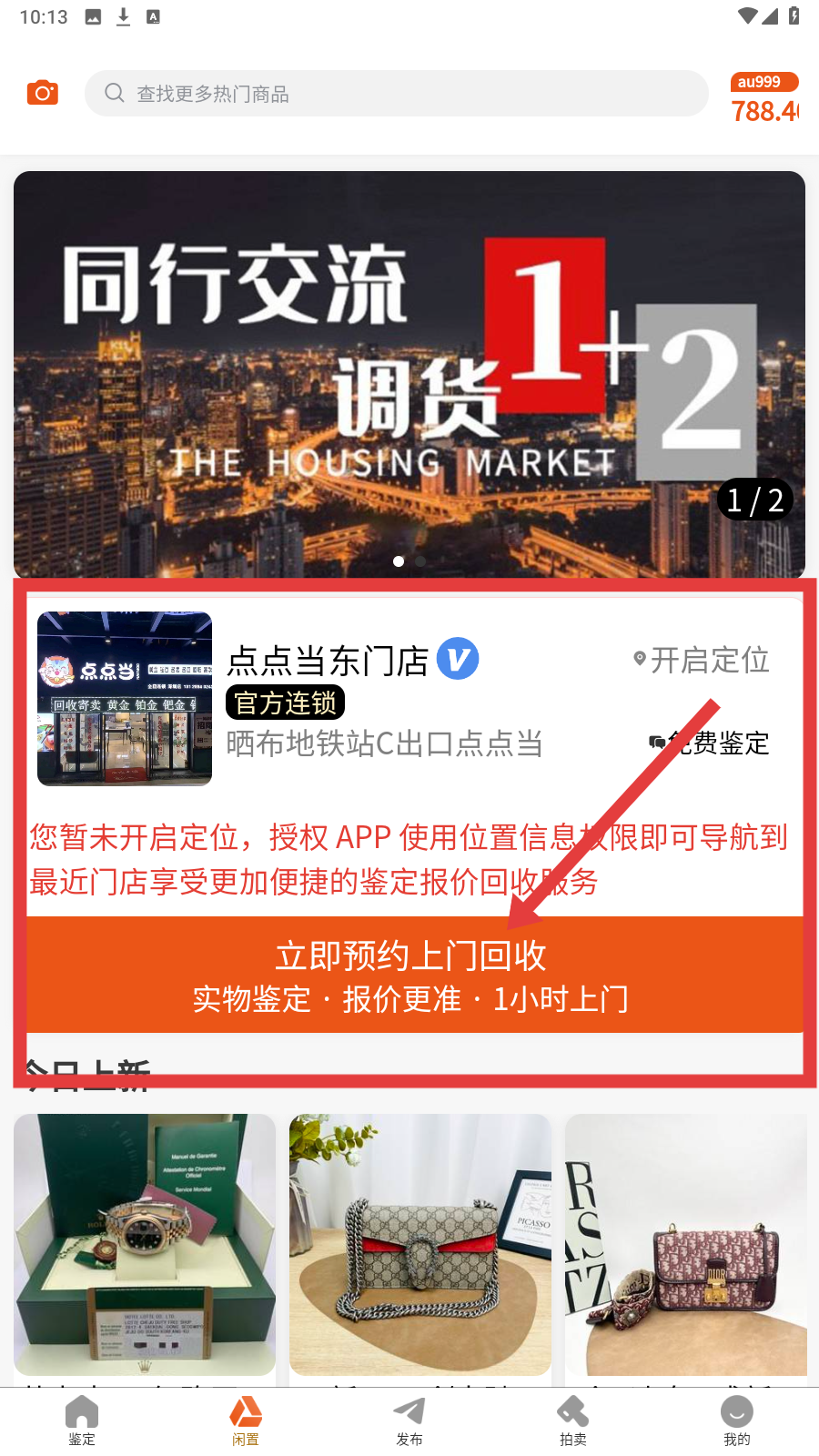 4、若有闲置奢侈品要回收,找到点点当门店,点【立即预约上门回收】,享受实物鉴定、1小时上门服务。
