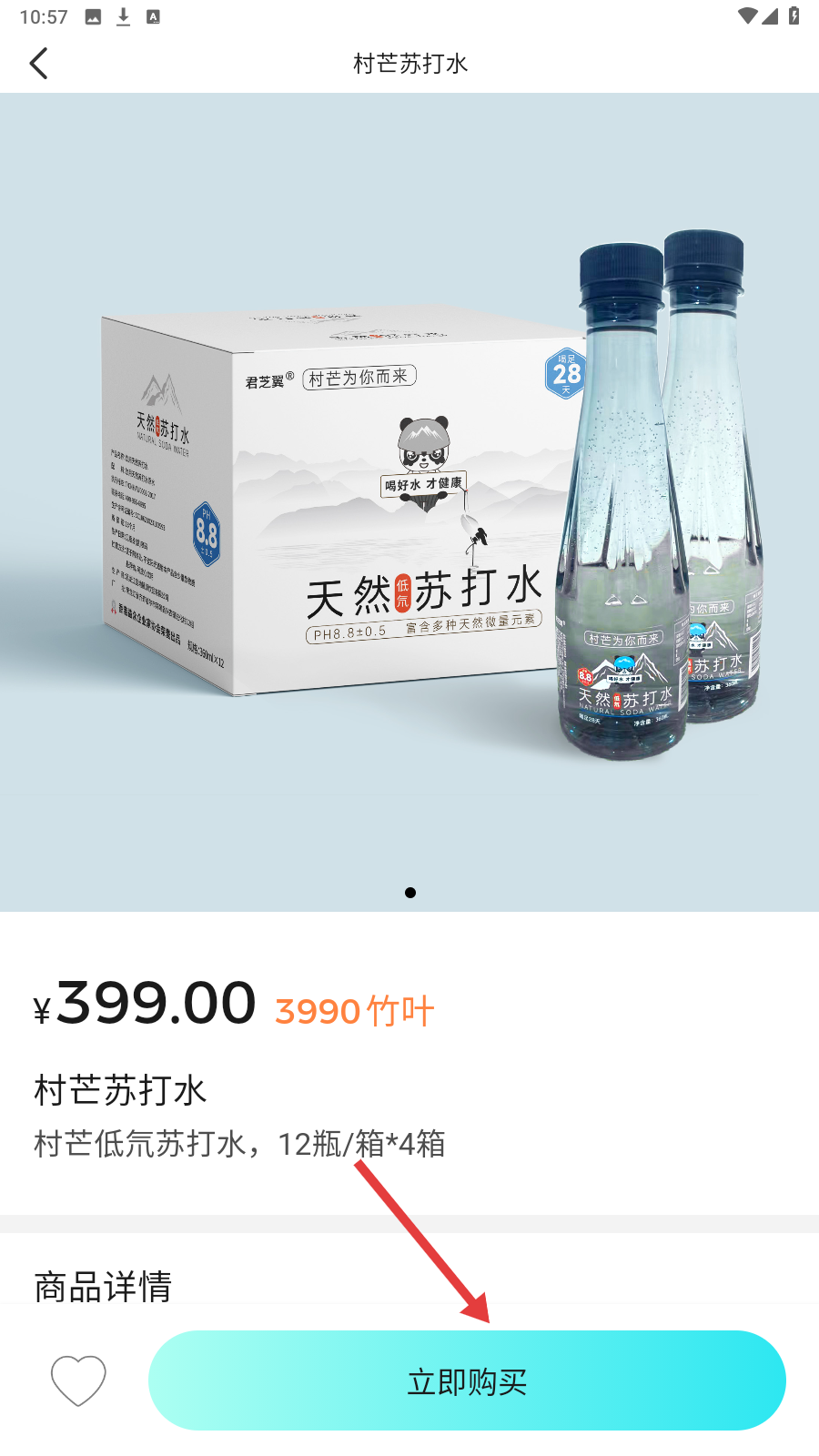4、选好村芒苏打水后,查看价格与规格,若要购买,点击【立即购买】完成下单。