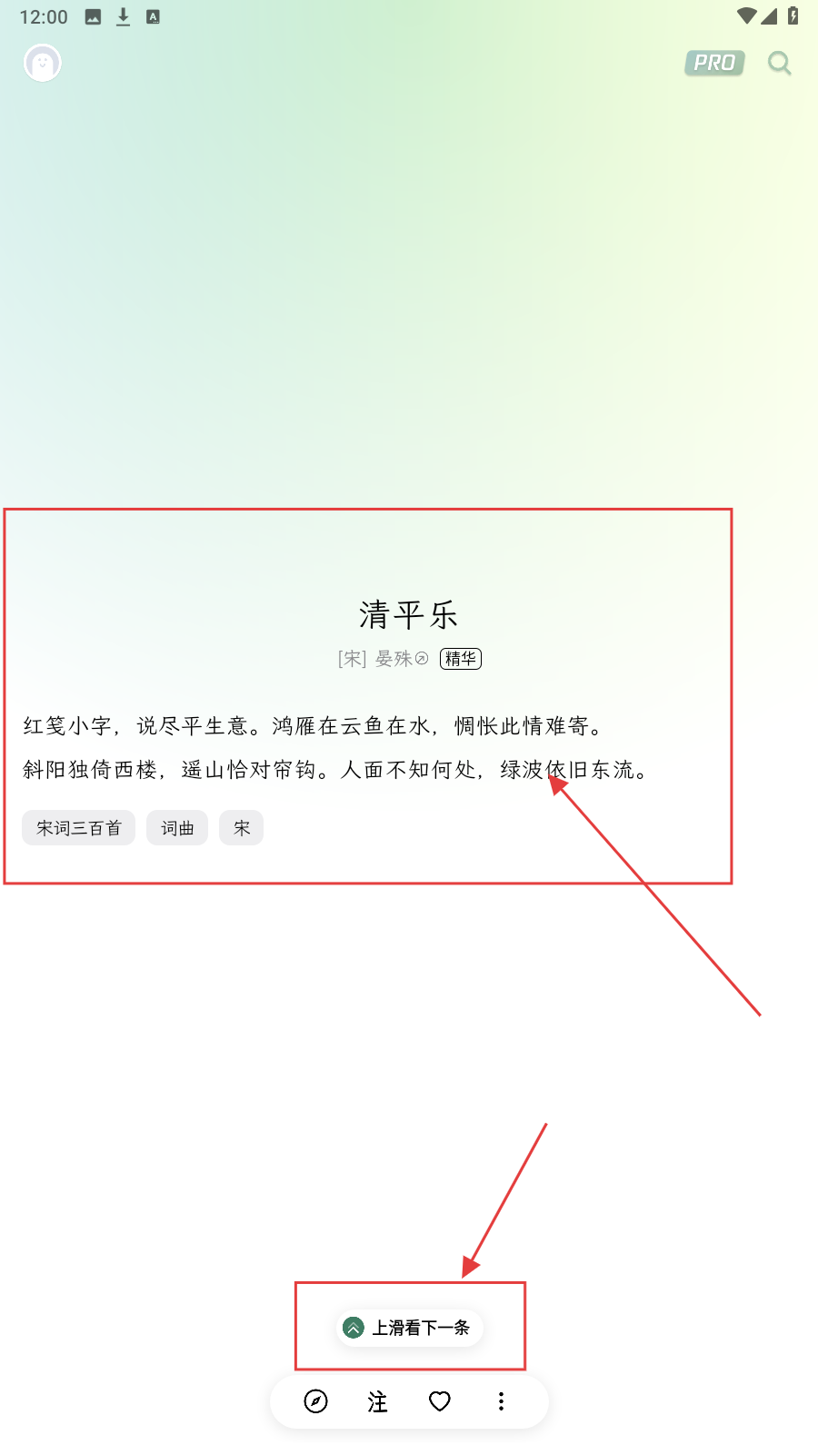 1、若想查看更多诗词,可按照提示【上滑看下一条】,轻松浏览不同作品,丰富诗词积累。