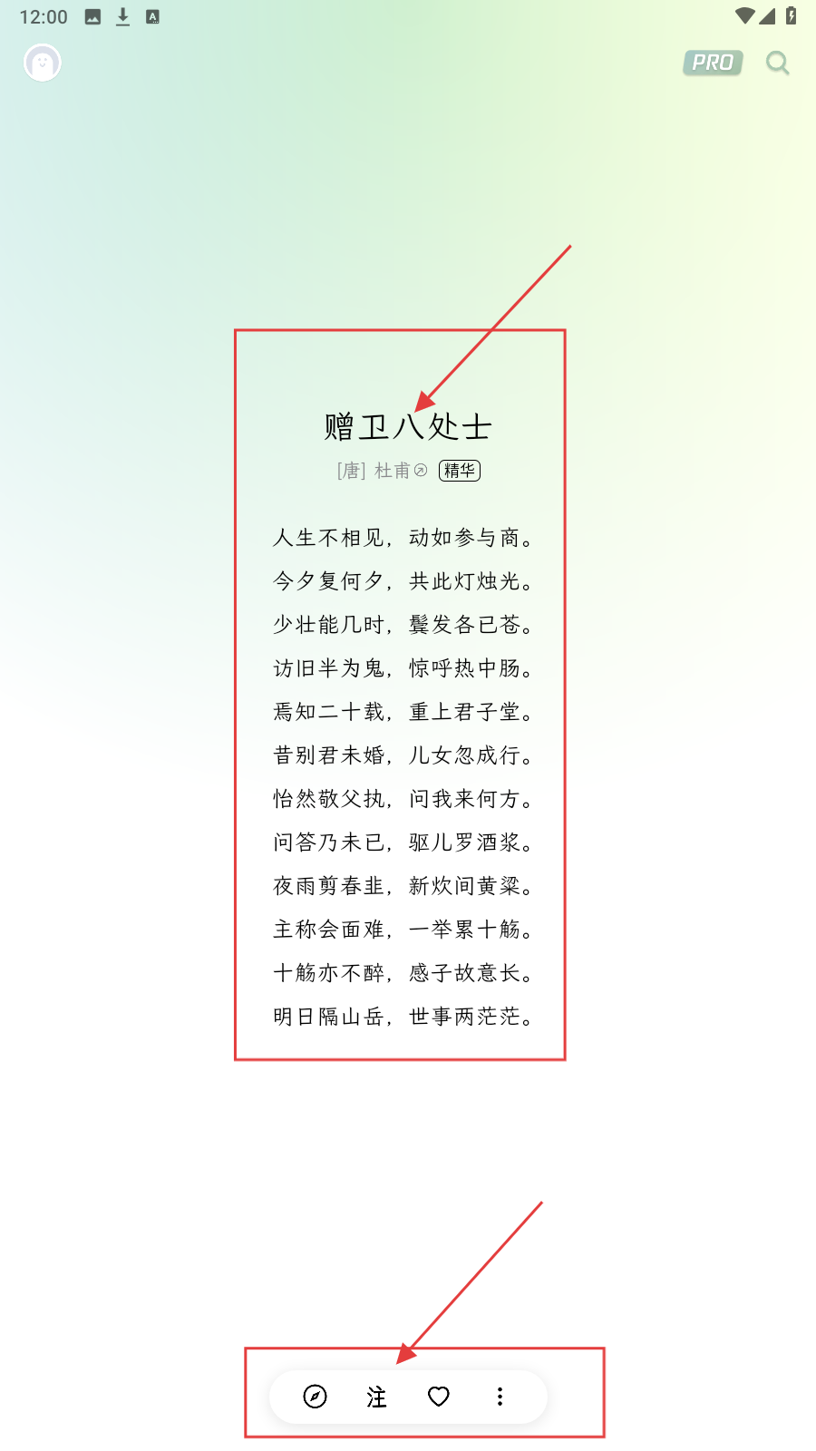 2、遇到喜欢的诗词,可点击下方【注】等按钮,能对诗词进行标注等操作,方便后续查找回顾。