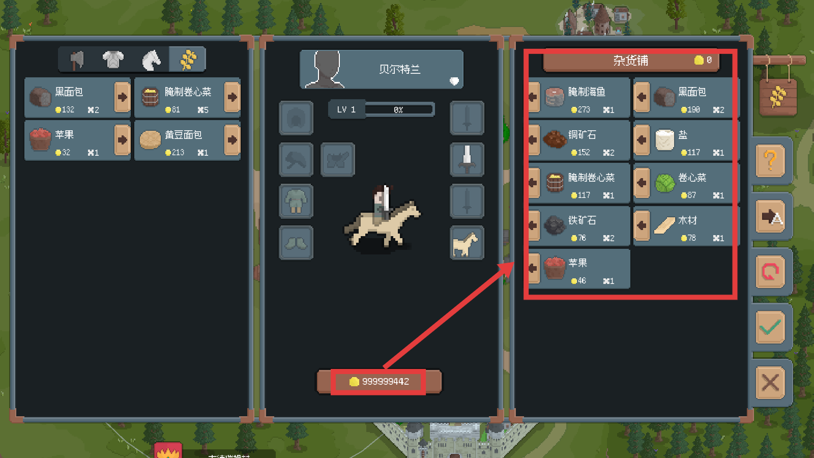 3、进入杂货铺,利用大量金币采购【腌制海鱼】【铜矿】等物资,为冒险储备资源。