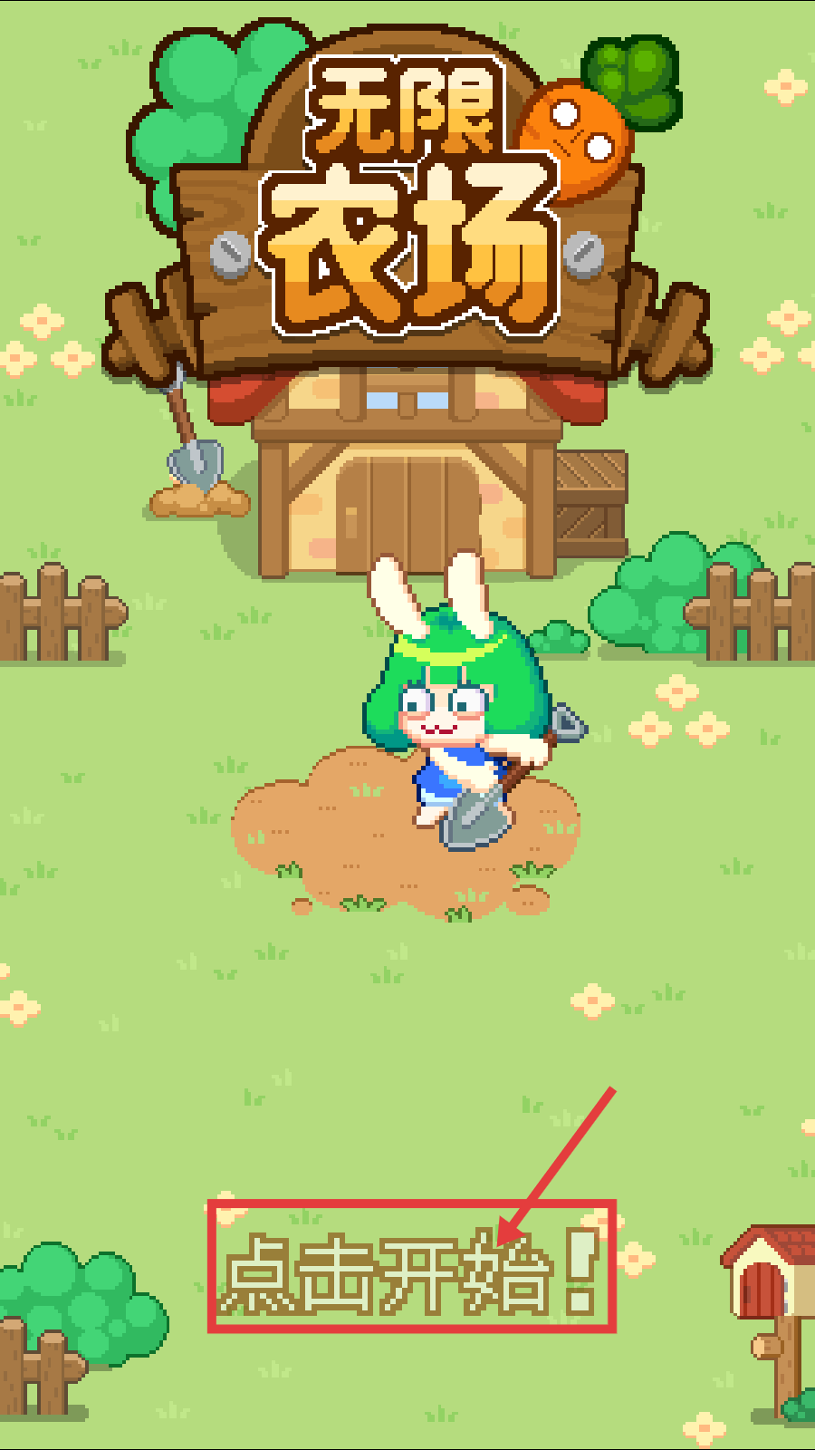 1、进入《无限农场》游戏,点击“点击开始”,开启农场经营之旅。