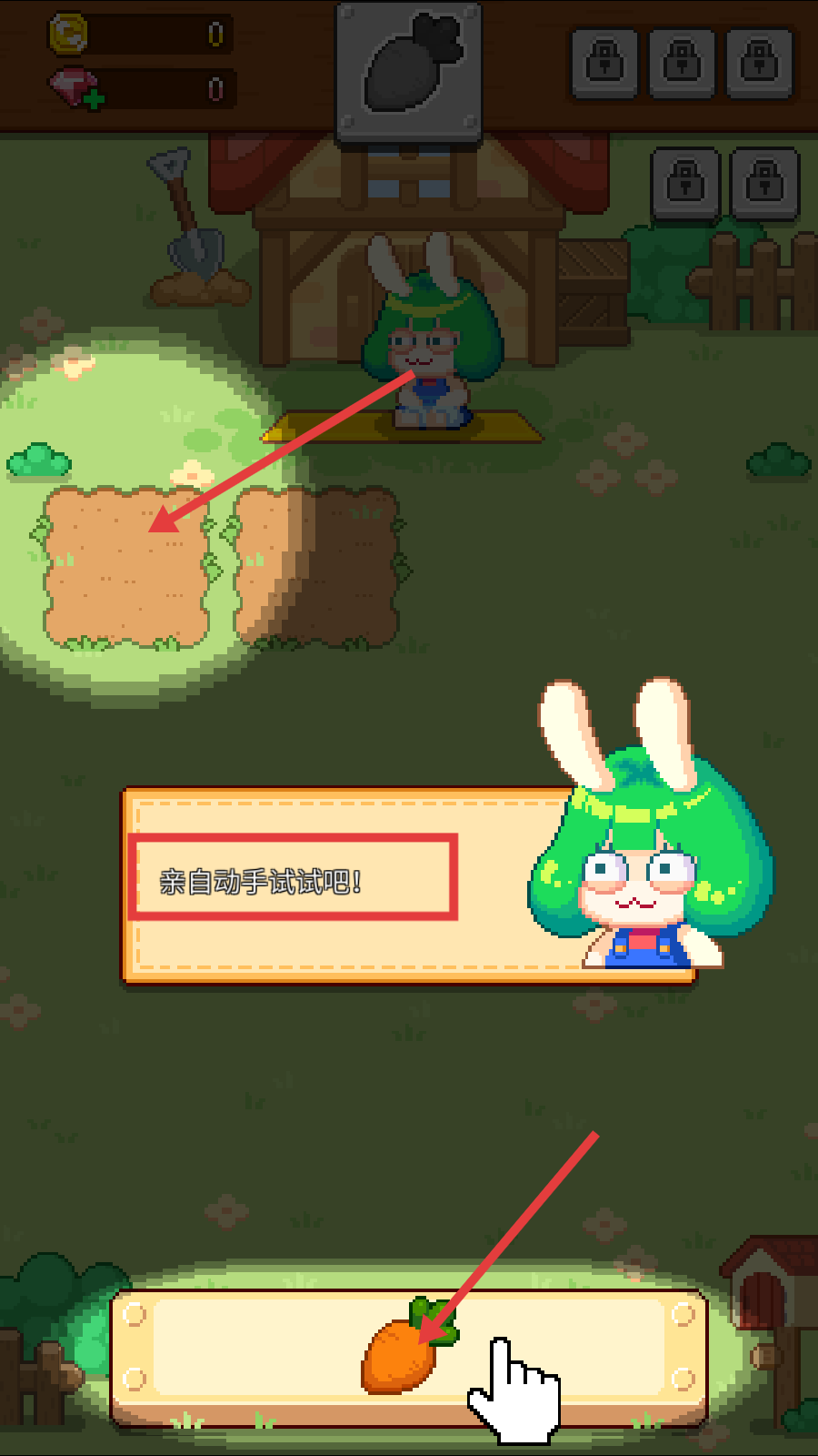 2、在农场土地上,亲自动手种植胡萝卜,开启农作物培育。