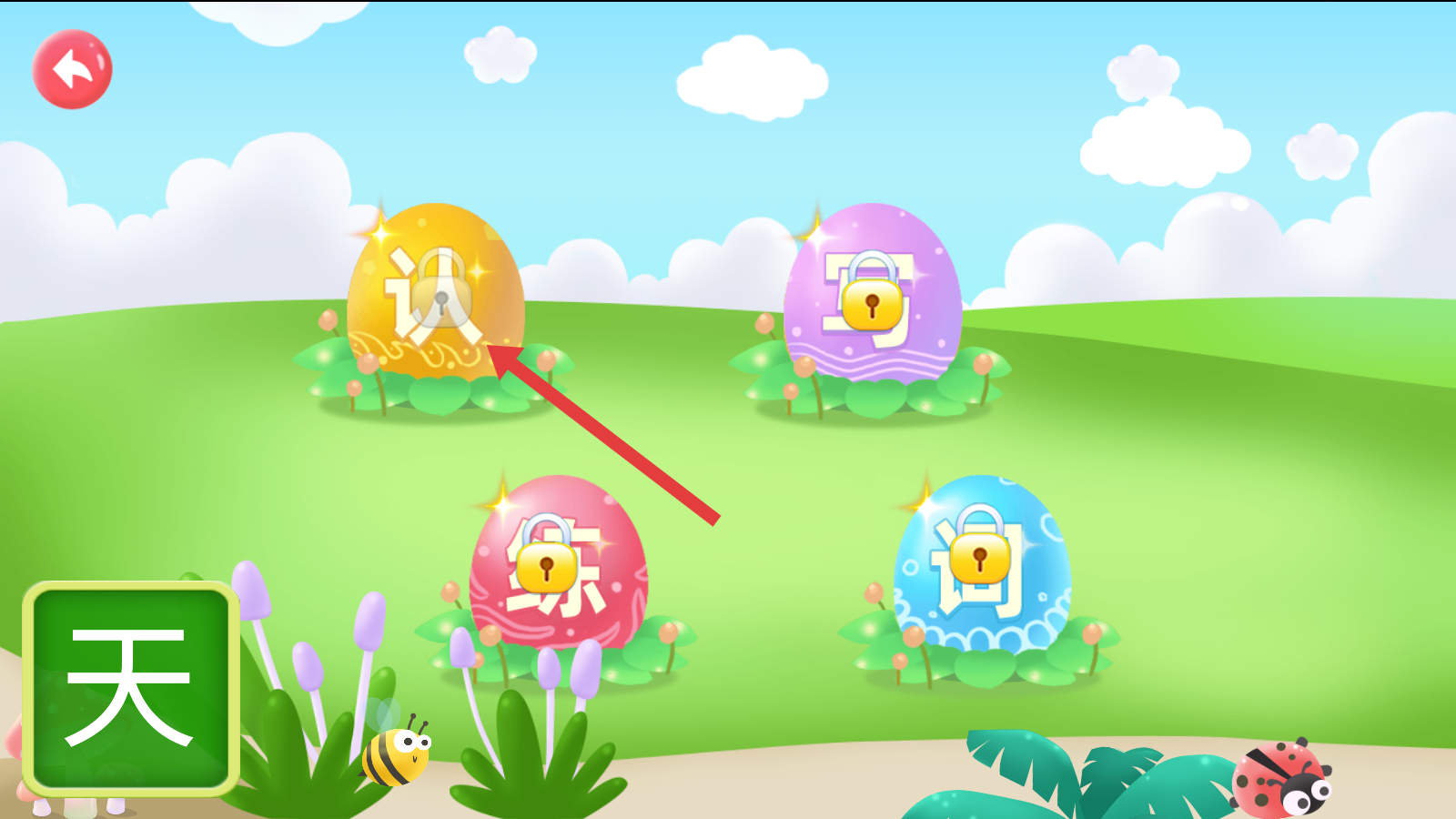 2、到“天”字学习页,有“认”“写”等彩蛋,点【认】彩蛋开始认识“天”字。