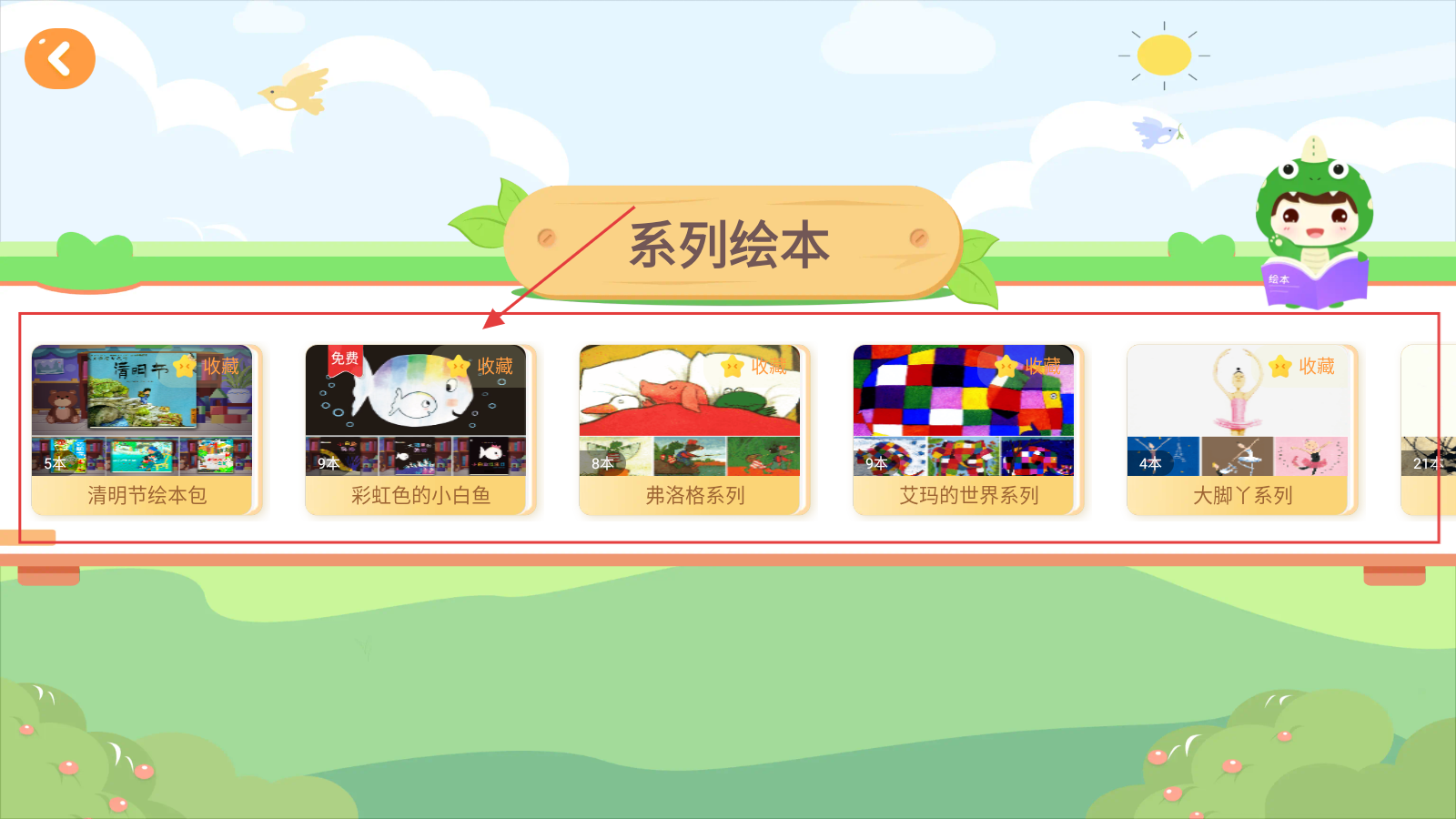 2、点击【系列绘本】分类,里面有《清明节绘本包》等系列,挑选感兴趣的系列。
