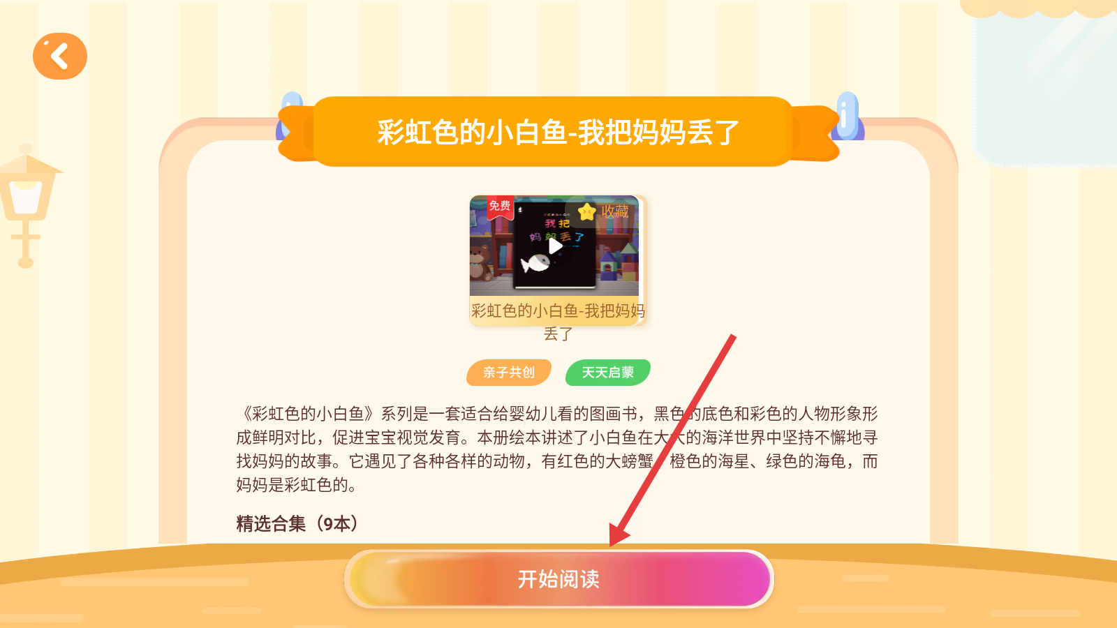 3、选《彩虹色的小白鱼》系列后,进入《彩虹色的小白鱼-我把妈妈丢了》详情页,点【开始阅读】。