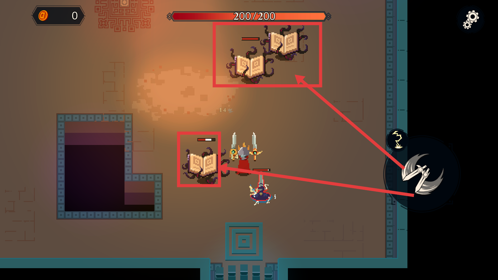 2、遇到书本类敌人时,点击右侧武器图标,对敌人发起攻击,逐步消灭场景中的敌人。