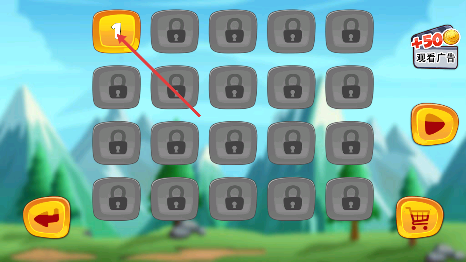 1、进入游戏后,点击【1】号关卡,开启第一关的冒险之旅。