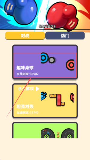 2、在热门列表选择“趣味桌球”,点击“解锁”加入34902名在线玩家。