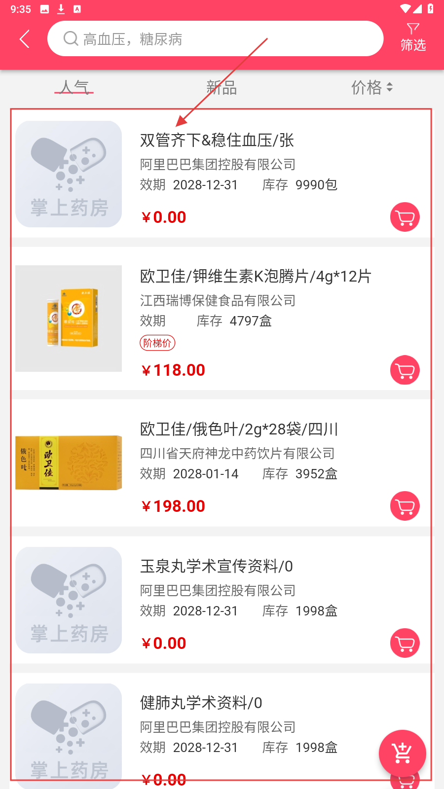 2、若想找特定商品,可在搜索栏输入关键词,也能在商品列表里,选商品查看。