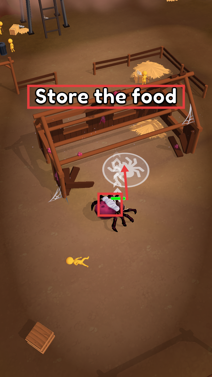 3、带着裹好茧的猎物,前往带有蜘蛛标识的区域,把食物存储起来,执行【Store-the-food】的任务。