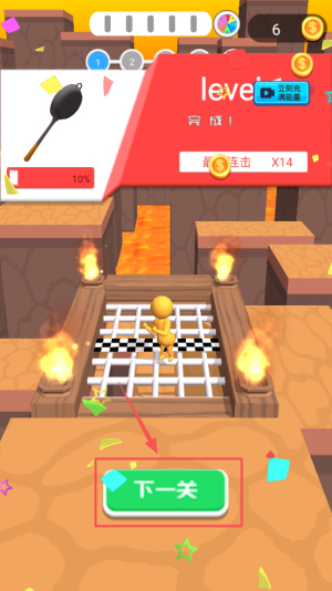 1、开启冲关之旅:进入游戏熟悉橡皮人操控方式,明确 “控制方向、冲开障碍” 规则,了解道具与武器基础作用,开启首关。