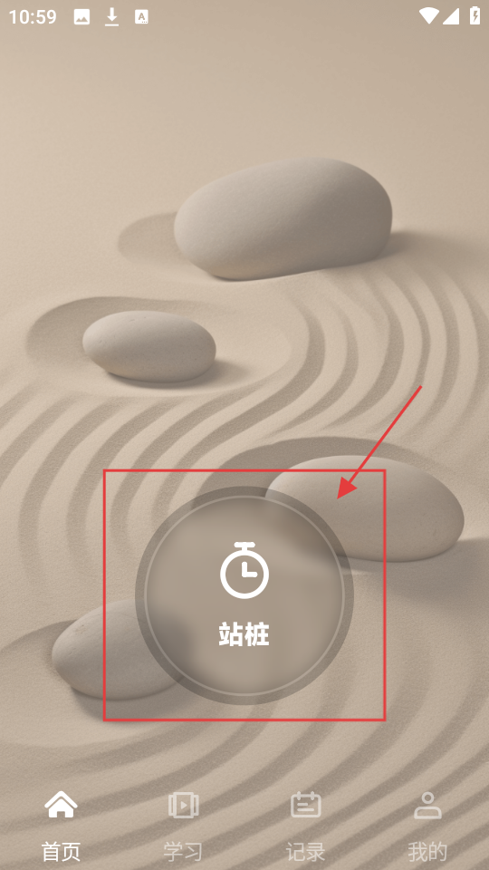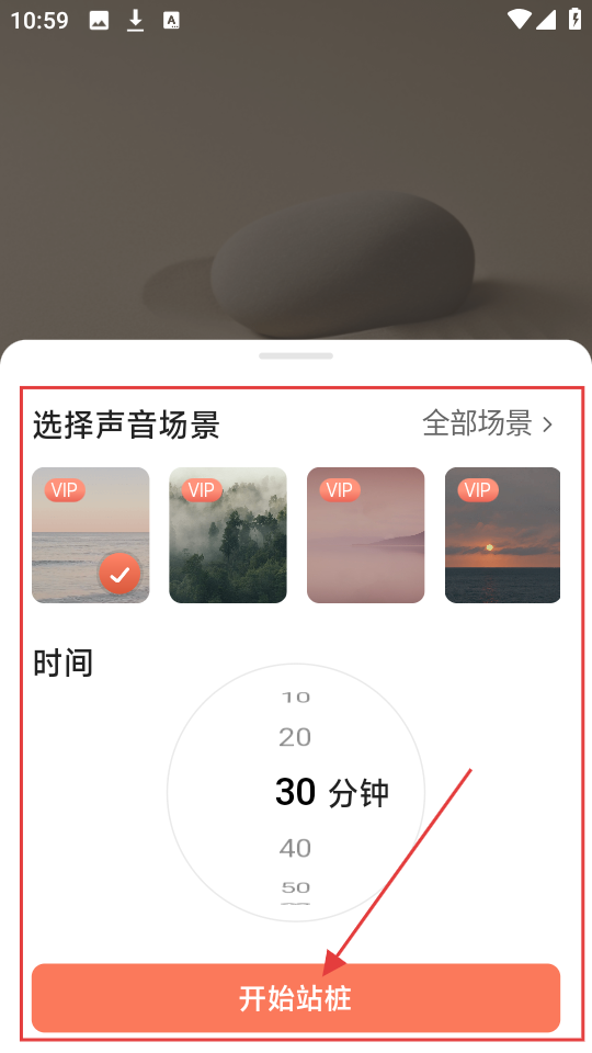 2、选择声音场景、设置站桩时长,点击【开始站桩】,开启站桩养生。